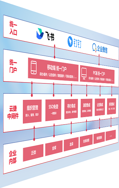 对协作平台提供支持服务,,,支持企业应用与协作平台对接,,,,包含组织同步、、消息集成、、待办集成等。。支持目前主流的协作平台:钉钉、、企微和飞书。。。。